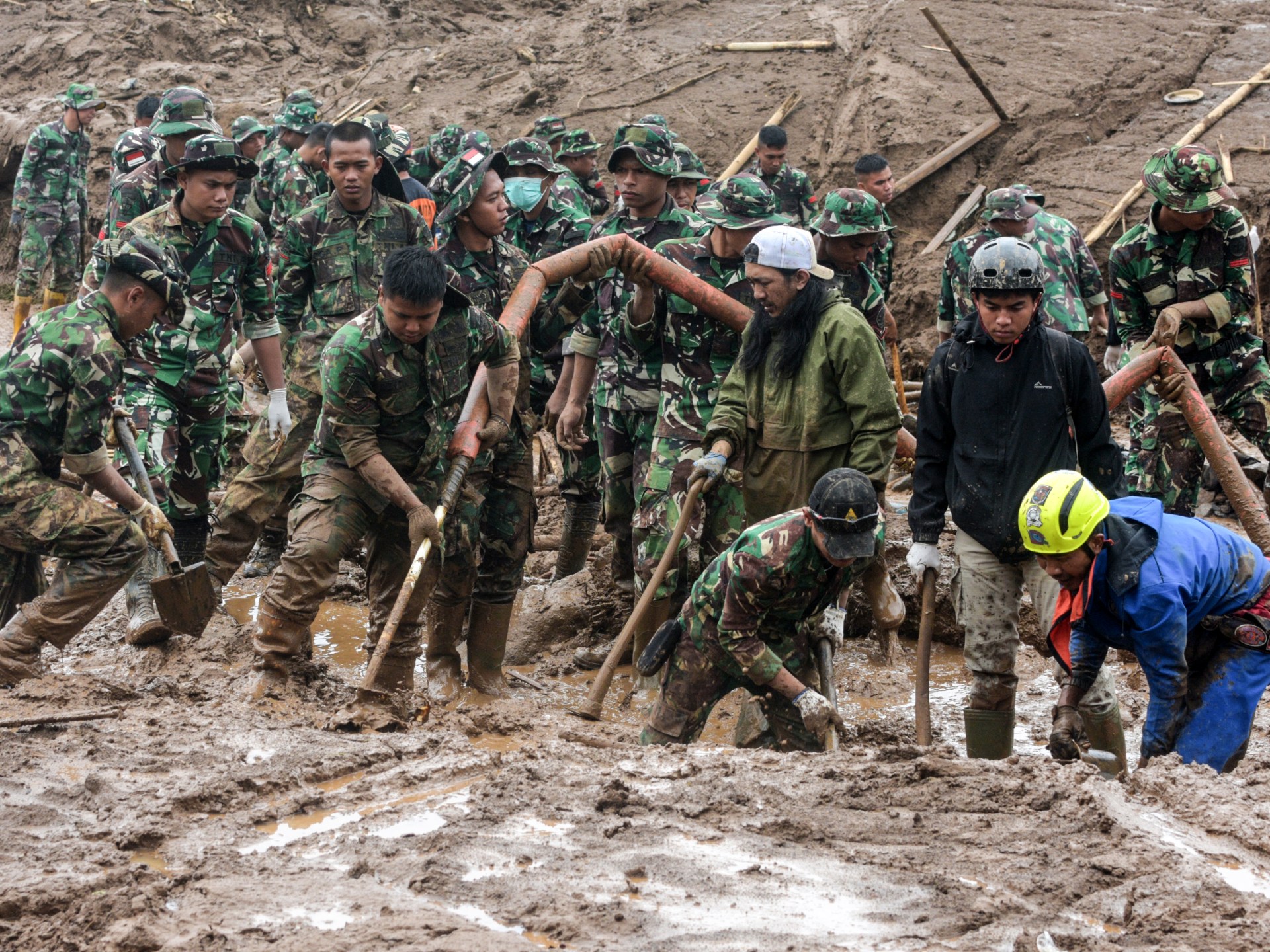 Rescuers were digging through mud, rocks and uprooted trees, said Yudhi Bramantyo, the operation director of the National Search and Rescue Agency. He said that in some places in the province, the mud reached up to eight metres (26 feet).