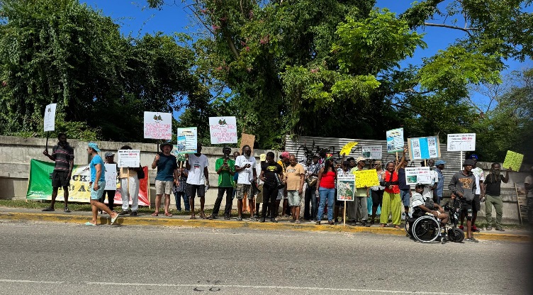 Some placard bearing members of the group gathered at Mammee Bay in St. Ann to call attention to the governments beach access management policy which they described as a continuation of colonialist restrictions.